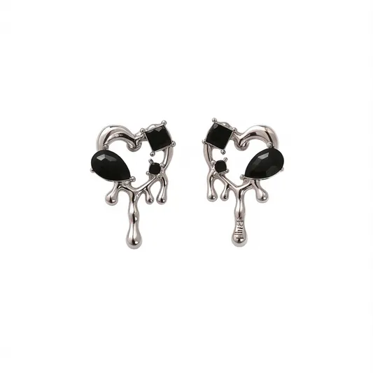 Punk Heart Drop Earrings Black Onyx Claw Setting Silver Plated Alloy Women's Party Fashion Jewelry