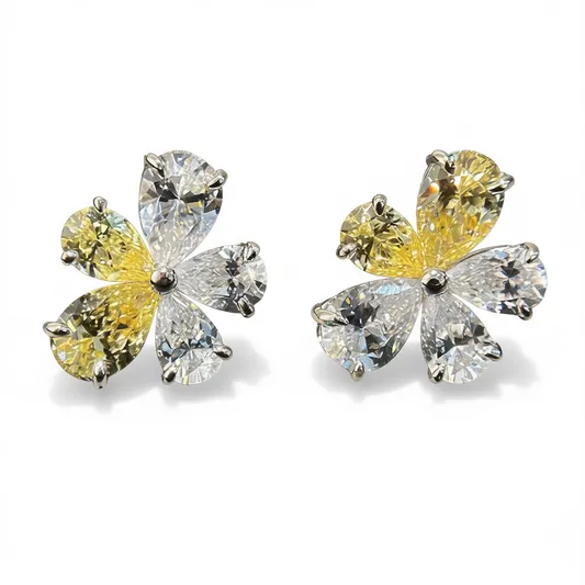 E3065 White Gold Diamond Earrings Pear Cut Fancy Color D Natural Luxury Women's Wedding Jewelry