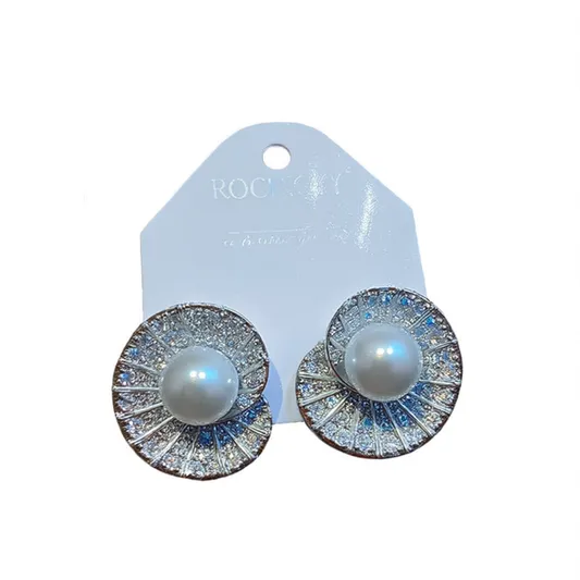 Rockcity Stud Earrings White Gold Imitation Pearl Round Brilliant Cut Bezel Setting Women's Classic Party Fashion Jewelry