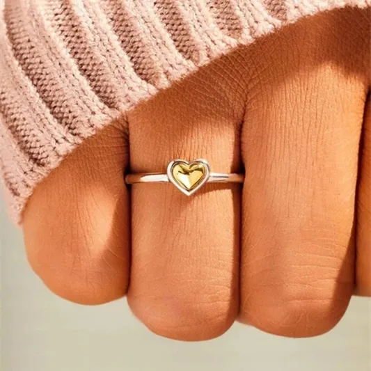 T0101 Heart Shape Silver Ring Gold Plated Bezel Setting Unisex Everyday Wear Fine Jewelry