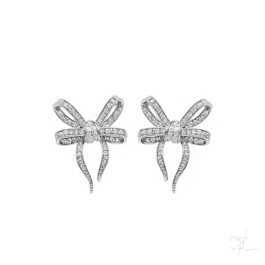 Cute Bowknot Stud Earrings White Gold Plated Rhinestone Crystal Party Jewelry for Women Fashion Earrings