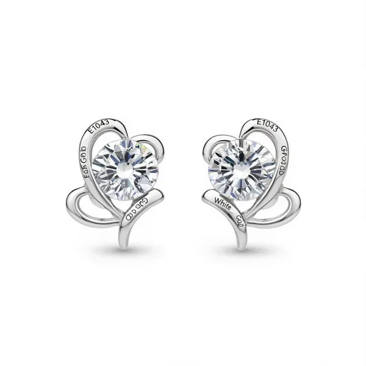 E1043 White Gold Heart Stud Earrings Round Crystal Claw Setting Classic Fashion Jewelry Unisex Gift