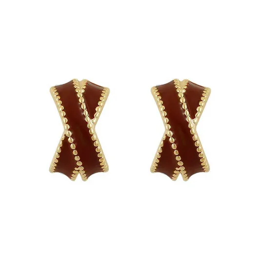Golden Geometric Stud Earrings For Women Trendy Fashion Alloy Jewelry Gold Plated Earrings With Red Inlay Design