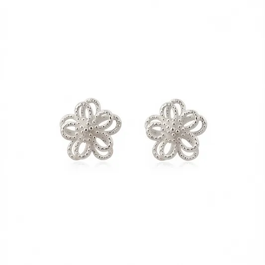 Tibetan Silver Flower Stud Earrings Classic Alloy Jewelry For Unisex White Gold Plated Fashion Earrings