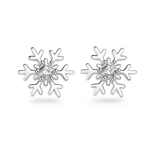 White Gold Snowflake Stud Earrings With Round Zircon Claw Setting For Women Cute Fashion Jewelry Gift