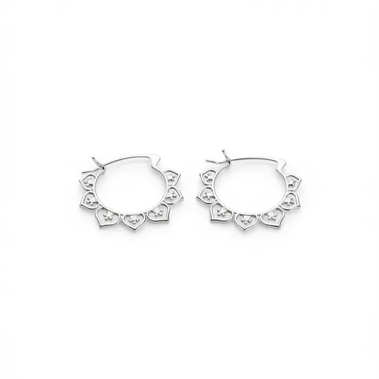 Tibetan Silver Hoop Earrings Flower Shape Women's Bohemia Style Silver Plated Alloy Jewelry Fashion Earrings