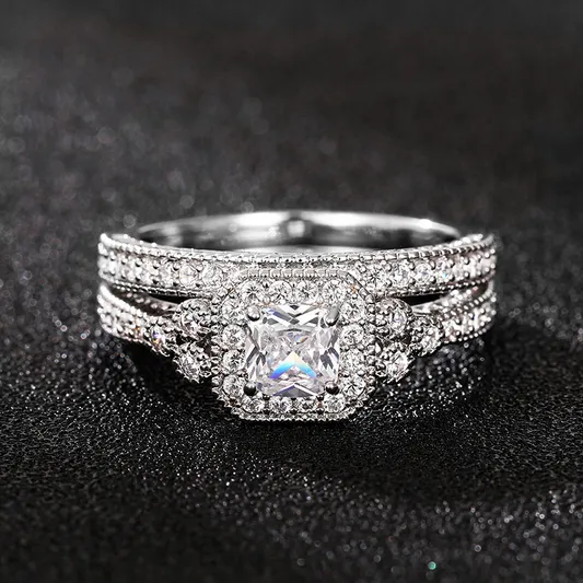 T0336 Princess Cut Diamond Engagement Ring White Gold Women's Natural D Color Halo Design