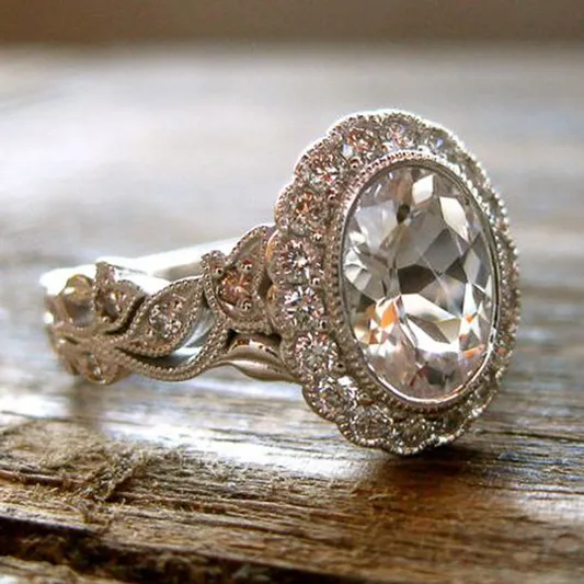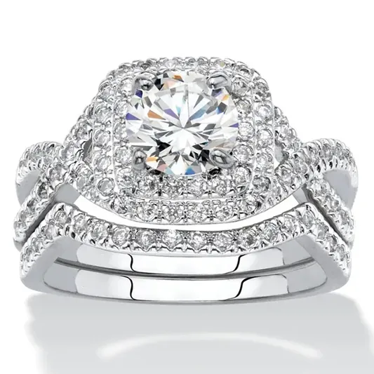 Q550 Women's Classic Engagement Ring Round Brilliant Cut Synthetic Diamond Halo Band With Side Stones