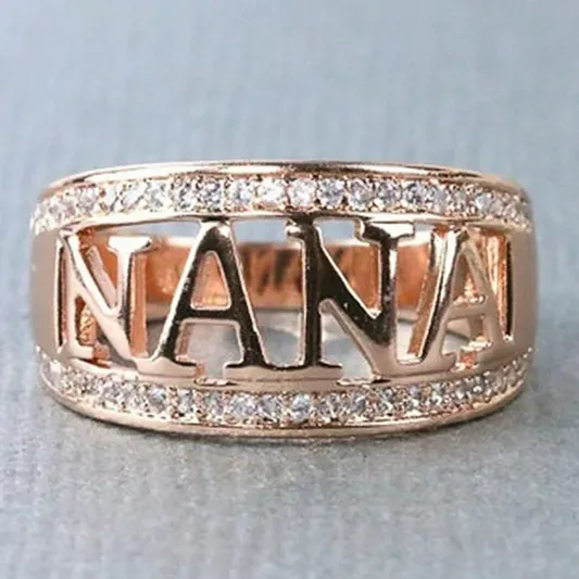 Rose Gold Nana Name Ring With Diamond Accents Women's Gift Jewelry T0339