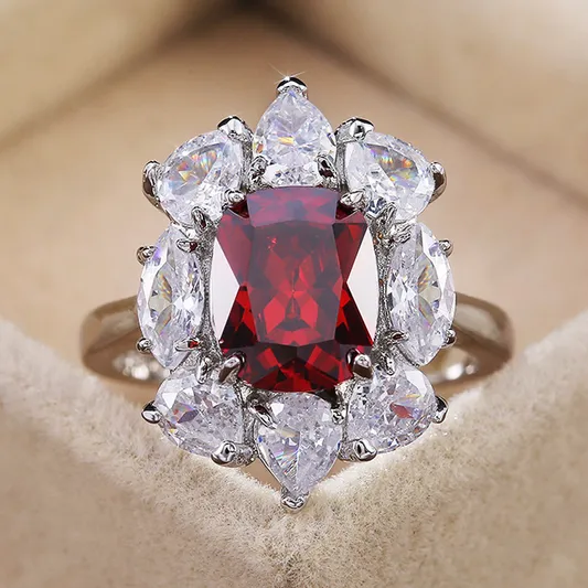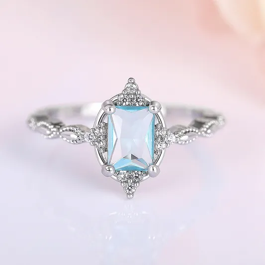 F567 Flower Shape Ring With Emerald Cut Zircon Prong Setting Women's Engagement Alloy Jewelry
