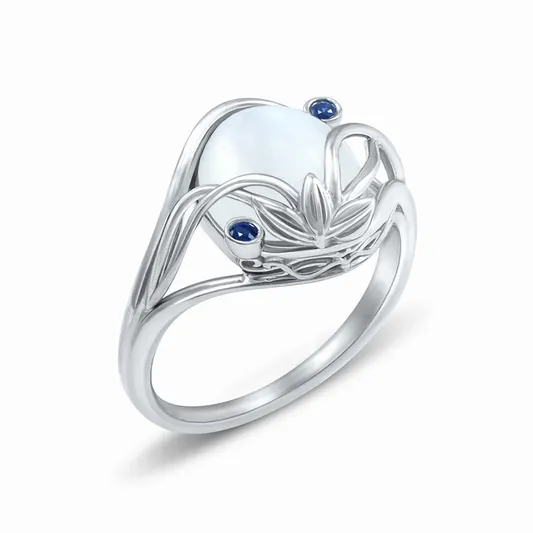 F325 Women's Moonstone Ring Oval Natural Gemstone Prong Setting Plant Pattern Engagement Fashion Rings
